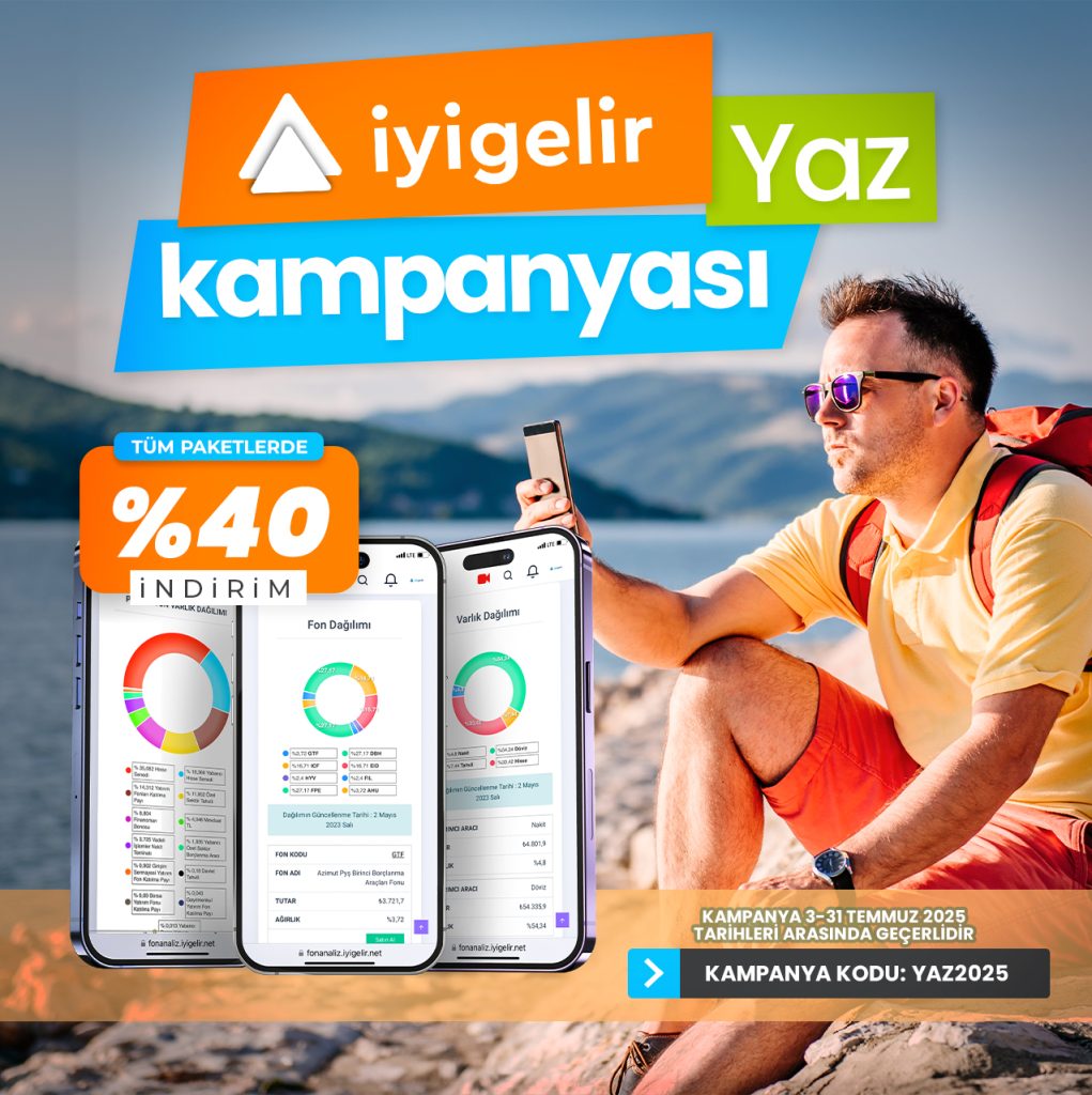 - Kampanyadan faydalanmak için https://fonanaliz.iyigelir.net/ üzerinden satın alınan aboneliklerin ödeme ekranında ilgili kampanya kodu alanına YAZ2025 kodunu girerek % 40 indirimden faydalanılabilir.